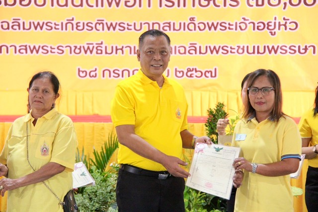 สุราษฎร์ธานี-มอบโฉนดเพื่อการเกษตร เฉลิมพระเกียรติพระบาทสมเด็จพระเจ้าอยู่หัว เนื่องในโอกาสพระราชพิธีมหามงคลเฉลิมพระชนมพรรษา 6 รอบ 28 กรกฎาคม 2567