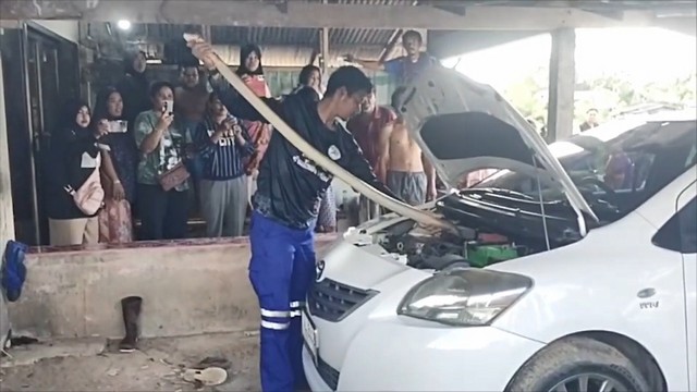 งูจงอางตัวใหญ่ ตามเด็กเล่นว่าวเลื้อยเข้าห้องเครื่องรถเก๋งเลขป้ายเห็นชัดๆ