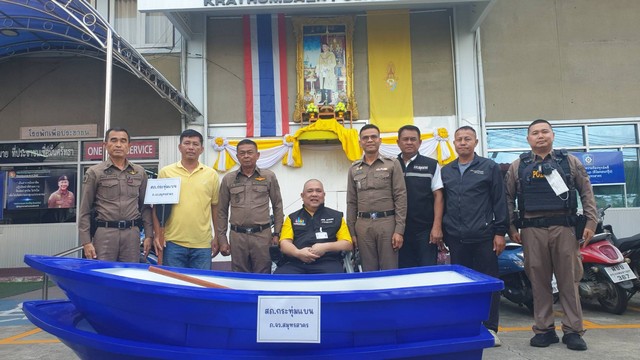สมาคมสื่อสร้างสรรค์เพื่อสังคมรับมอบ เรือ จำนวน 2 ลำ จาก ข้าราชการตำรวจ สภ.กระทุ่มแบน