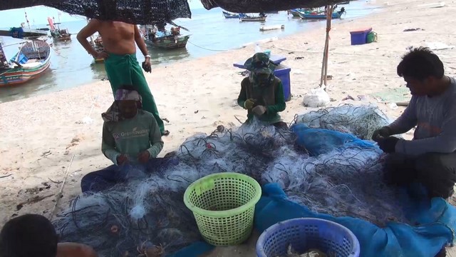 สงขลา-ชาวประมงพื้นบ้านชุมชนบ้านเก้าเส้ง สงขลา ออกทำการประมงวางอวนปูบริเวณชายฝั่งจังหวัดสงขลา