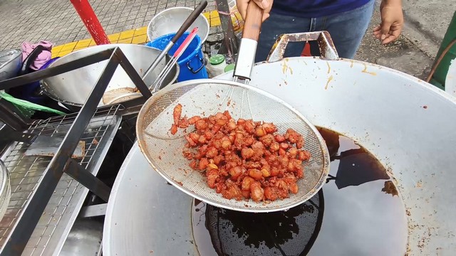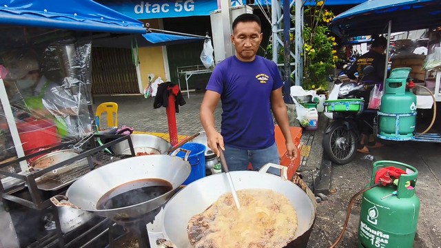 สงขลา-ข้าวเหนียวหมูทอดห่อใบตอง เจ้าอร่อย หน้าไปรษณีย์สงขลา ที่มีหมูทอดสมุนไพร 4 รสชาติ ช่วงนี้เป็นเทศกาลถือศีลกินเจทางร้านไม่ได้รับผลกระทบแต่อย่างใด ลูกค้ายังคงเหนียวแน่นและยังขายราคาเดิมห่อละ 20 บาท