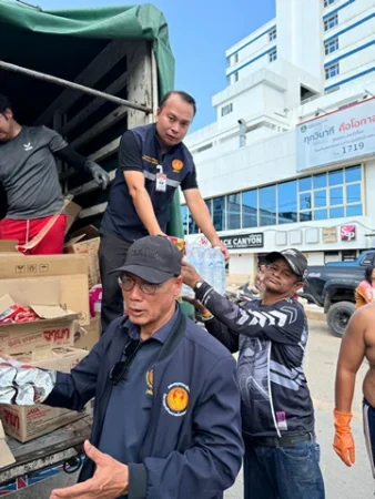 ซึ่งได้นำการ ตระเวน แจกจ่ายให้กับประชาชนที่เดือดร้อน ตามชุมชนต่างๆ ซึ่งยังช่วยตนเองไม่ได้ แม้ว่าน้ำจะแห้งแล้ว แต่หลายชุมชน ยังไม่มีไฟฟ้า และน้ำประปา ไม่สามารถ ทำความสะอาดบ้านเรือน ส่วนใหญ่ของผู้ประสพภัย ในชุมชนต่างๆ อยู่ในสภาของผู้ที่หมดเนื้อหมดตัว เหลือเสือผ้าติดตัวเพียงชุดเดียว และไม่มีเงิน ที่จะใช้ในการซื้อ ข้าวปลาอาหาร เพื่อประทังชีวิต