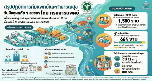 นายอนุวัฒน์ กล่าวเพิ่มเติมว่า การฉีดพ่นน้ำยาฆ่าเชื้อจำเป็นต้องทำต่อเนื่องทุก 7 วัน หรือเมื่อมีปัญหากลิ่นเหม็นและแมลงเพิ่มขึ้น โดยมุ่งลดผลกระทบต่อประชาชนในพื้นที่น้ำท่วม พร้อมย้ำว่าภารกิจเร่งด่วนในเวลานี้คือการเคลื่อนย้ายขยะไปยังพื้นที่เกาะแต้วให้เร็วที่สุดเพื่อคืนพื้นที่สาธารณะให้กับชาวหาดใหญ่