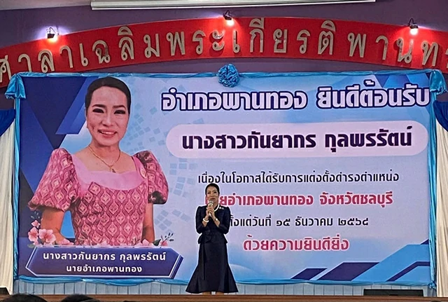 ชลบุรี-ชาวพานทองร่วมแสดงความยินดีต้อนรับนายอำเภอหญิงคนแรก คนใหม่