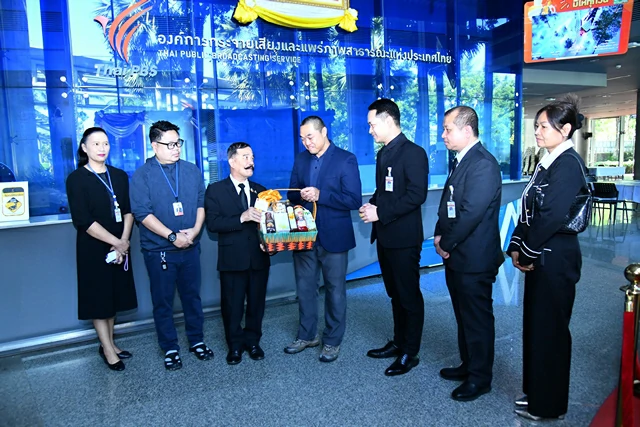 จากนั้นเวลา 10.30 น.เข้ามอบกระเช้าปีใหม่แก่สถานีโทรทัศน์ไทยพีบีเอส (Thai PBS) โดยมีนายคณิศ บุณยพานิช บรรณาธิกรบริหารด้านข่าวสืบสวน และนายปัญญา ทิ้วสังวายล์ ผู้ช่วยบรรณาธิการข่าวการเมือง เป็นผู้รับมอบ