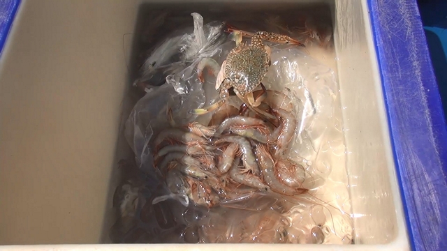 โดยนำเรือออกไปทำการวางอวนห่างจากฝั่งประมาณ 3 -4 กิโลเมตร และกลับเข้าฝั่งประมาณ 08.00 น. สำหรับสัตว์น้ำที่จับได้ในวันนี้ ส่วนใหญ่จะเป็นกุ้งและปลาแต่จับได้น้อยกว่าทุกวันที่ผ่านมา เนื่องจากคลื่นลมแรงน้ำเชี่ยว การวางอวนไม่นิ่ง เป็นสาเหตุทำให้จับกุ้งปลาได้น้อย นำไปขายก็พอจะคุ้มค่าน้ำมัน แต่ไม่ถึงกับได้กำไร และมีชาวประมงบางส่วนที่ยังไม่กล้านำเรือออกไปทำการประมง ยังจอดเรืออยู่บนชายหาด เนื่องจากอุตุใต้แจ้งเตือนคลื่นลมแรงต่อเนื่องจึงต้องรอให้แน่ใจว่าคลื่นลมในทะเลไม่มีความรุนแรงมากนักก็จะนำเรือออกทำการประมง