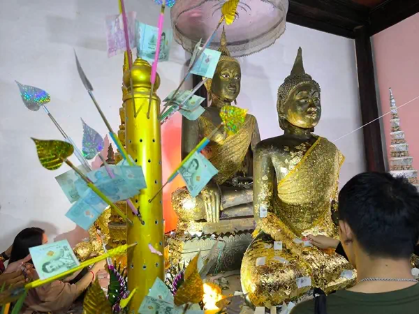 ได้มีประชาชนจำนวนมากมาร่วมทำบุญปิดทององค์หลวงพ่อสามพี่น้อง พระประธานในอุโบสถหลังเก่า(วิหารสามพี่สอง)และเมื่อถึงเวลาที่กำหนดไว้ได้จัดพิธีเดินเวียนเทียนรอบพระอุโสถหลวงพ่อสามพี่น้อง เนื่องในวันมาฆบูชา โดยมีพระครูประโชติวีณาภรณ์ เจ้าคณะตำบลนครนายก เจ้าอาวาสวัดดง พร้อมพระสงฆ์เดินนำ และต่อเป็นแถวพี่น้องประชาชนที่มาร่วมงาน เดินเวียนเทียน 3 รอบแล้วนำดอกไม้ธูปเทียนขึ้นไปกราบไหว้องค์หลวงพ่อสามพี่น้อง เป็นอันเสร็จพิธี