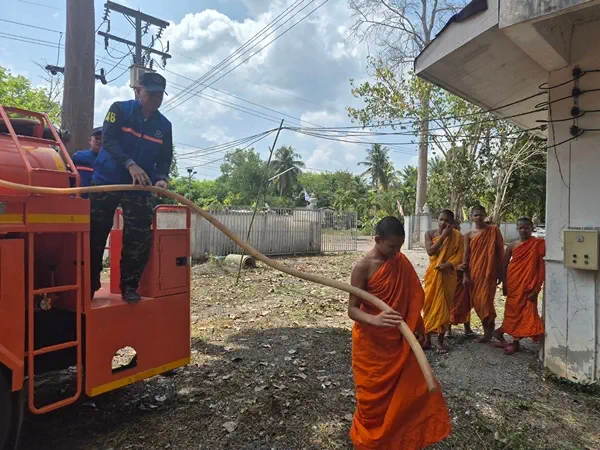 สุราษฎร์ธานี -นพค.46 ช่วยเหลือสามเณรนักเรียนพระปริยัติธรรมสามัญศึกษา ปัญญาทีปวิทยานุสรณ์ หลังเกิดภาวะฝนทิ้งช่วง ขาดแคลนน้ำ