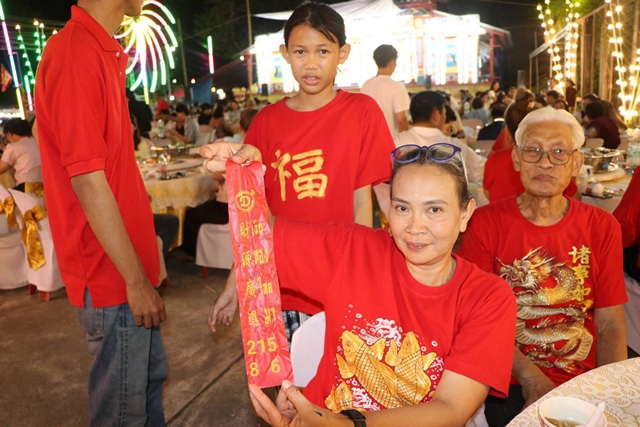 อีกหนึ่งไฮไลต์สำคัญของงาน คือกิจกรรม ประมูลสิ่งของมงคล ไม่ว่าจะเป็น ส้มมงคล โคมไฟเสริมสิริมงคล และต้นไผ่มงคล ซึ่งล้วนเป็นสัญลักษณ์แห่งโชคลาภ ความรุ่งเรือง และความเจริญก้าวหน้า โดยผู้เข้าร่วมงานต่างร่วมประมูลกันอย่างคึกคัก เพื่อนำสิ่งมงคลกลับไปเสริมดวง เสริมบารมีให้กับตนเอง ครอบครัว และกิจการ