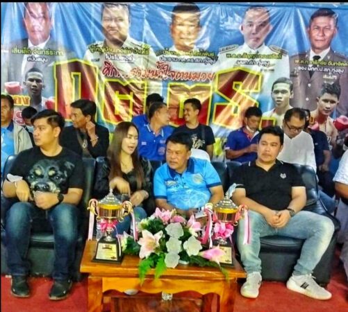 นายสุพิศ พิทักษ์ธรรม นายกสมาคมกีฬามวยอาชีพภาคใต้ นั่งสนทนากับ “ซ้อเอ๋ ” สุนทรี โลหะพืช หัวหน้าค่ายมวยจิตรเมืองนนท์ / โปรโมเตอร์จัดมวยชื่อดัง ในรายการมวยศึก” รวมใจคนมวย + กต.ตร.สภ.ทุ่งลุง “เพื่อร่วมเป็นพลังในการขับเคลื่อน สร้างสรรค์ วงการมวยให้กระหึ่ม ยิ่งใหญ่ ต่อไป ณ.สนามมวยชั่วคราว ทางเข้าเทศบาลพะตง อ.หาดใหญ่ จ.สงขลา เมื่อวันพุธที่ 24 สิงหาคม 2565 ที่ผ่านมา