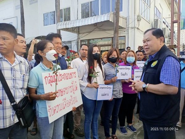 ตาก= กลุ่มมวลชน แห่ต้อนรับ รมช.เกษตร ฯ ลงพื้นที่ ชายแดนแม่สอด วอนเร่งแก้ปัญหา การค้าโค-กระบือ ข้ามแดน