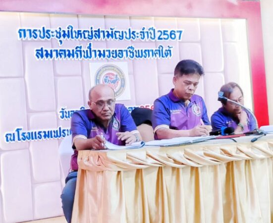 (#)(#) การประชุมสามัญใหญ่ประจำปี 2567 ของสมาคมกีฬามวยอาชีพภาคใต้ โดยมี อาจารย์ประภาส เพ็ชรไทยพงค์ อุปนายกฯ ทำหน้าที่เป็นประธานการประชุมแทน นายกสมาคมกีฬามวยอาชีพภาคใต้ นายสุพิศ พิทักษ์ธรรม ที่ติดภาระกิจสำคัญ ไม่สามารถ มาเข้าร่วมประชุมได้ เมื่อวันอาทิตย์ที่17 มีนาคม 2567 ที่ผ่านมา ณ.โรงแรมเฟรนด์ ลีเทล อ.หาดใหญ่ จ.สงขลา วาระการประชุม ก็ได้ผ่านไปด้วยความเรียบร้อยดี ทุกๆ วาระ ท่ามกลางบรรยากาศ ที่คึกคัก บุคลากรวงการมวยแดนใต้ เดินทางมาเข้าร่วมประชุมกันอย่างพร้อมเพรียงกัน ทางสมาคมฯ ได้มอบรางวัลยอดเยี่ยมให้กับ ผู้ที่มีผลงานดีเด่น ประกอบไปด้วย รางวัล นักมวยไทยยอดเยี่ยม