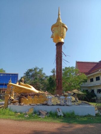 องค์บุญแห่งล้านนา ”ครูบาธรรมชัย”ขอเชิญอุบาสกอุบาสิกาผู้ใจบุญพระศรีอริยเมตไตรยพายุโหมกระหน่ำพังทลายเหลือเพียงแค่โครงเศียรพระ